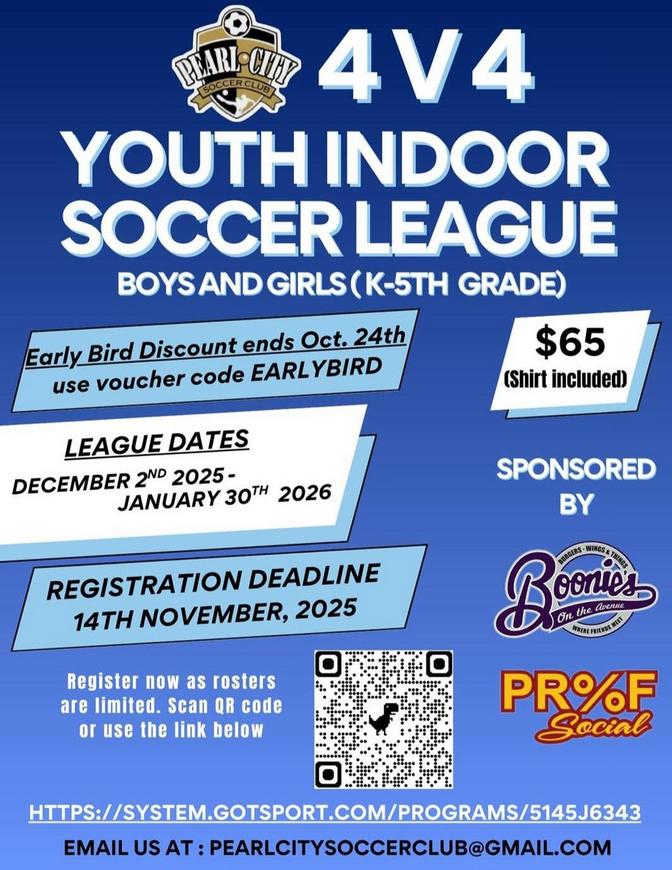Players both boys and girls from Muscatine, West Liberty, and other surrounding communities from the grades K-5th grade are part of a fun and filled of learning in our SPRING, FALL, and WINTER Pearl City Youth Recreational League. Players are able to be trained by one of our Professionally licensed coaches. Players train/practice once a week and also are able to compete in a game on Friday nights. The league lasts for 6-7 weeks. This is open for both club and players not playing in any Pearl City club teams. Practices and games are at the Muscatine Soccer Complex in Muscatine, Iowa