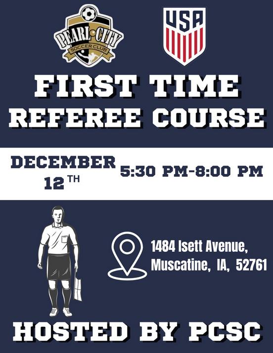 Anyone interested in becoming a referee and a referee course is not posted, please contact Walton Ponce at 563-571-3019 or email at waltonponce11@gmail.com; Referees are always needed for both the youth and adult levels. It is a great way to give back to the game and also make $!! Please reach out.